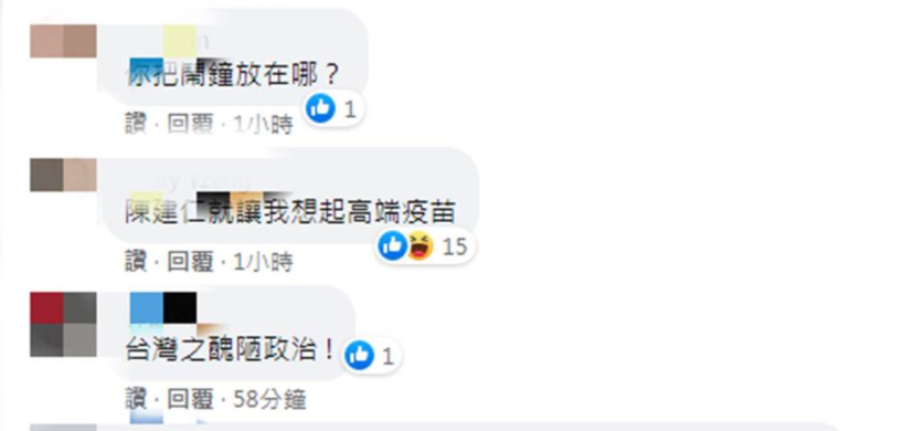 許多網(wǎng)友也在其po文底下留言,“阿中錯誤太多,是該換人”、“阿中還是在體系里啦,不用再想了”、“看來時中的敵人在黨內(nèi)”、“可以讓林什麼堅的,來臺北市選市長,這樣就不用搞竹竹合并了”、“你把鬧鐘(時中)放在哪”。