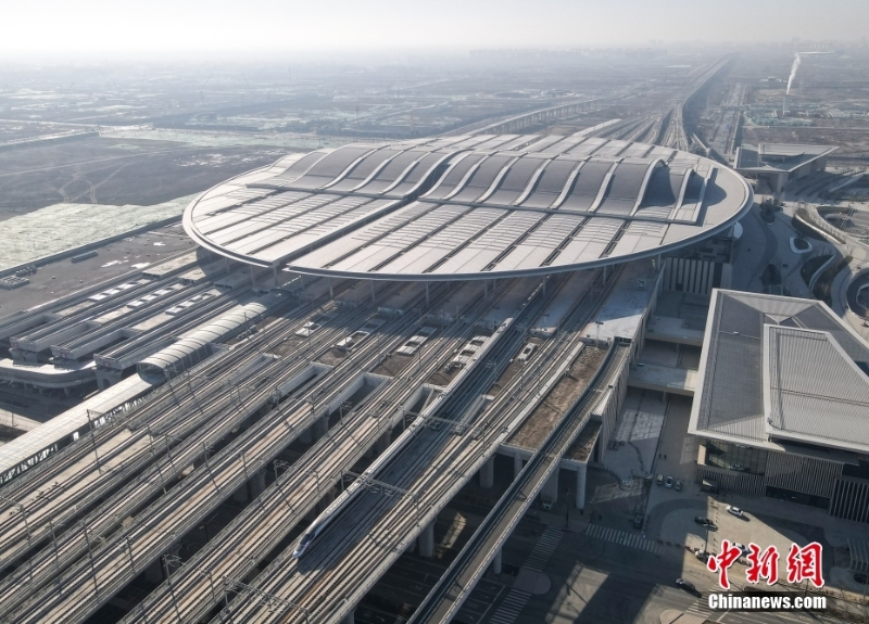 12月27日,一列智能復(fù)興號(hào)動(dòng)車(chē)組??吭谛郯舱?。當(dāng)日,京雄城際鐵路開(kāi)通運(yùn)營(yíng)一周年。一年間,京雄城際鐵路推動(dòng)了沿線城市經(jīng)濟(jì)、交通、旅游的蓬勃發(fā)展。北京西站至雄安站最快50分鐘可達(dá),大興機(jī)場(chǎng)站至雄安站最快19分鐘可達(dá)。中新社記者 賈天勇 攝