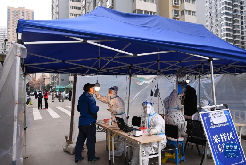 12月27日,在西安市碑林區(qū)張家村街道太白社區(qū),居民在接受核酸檢測。