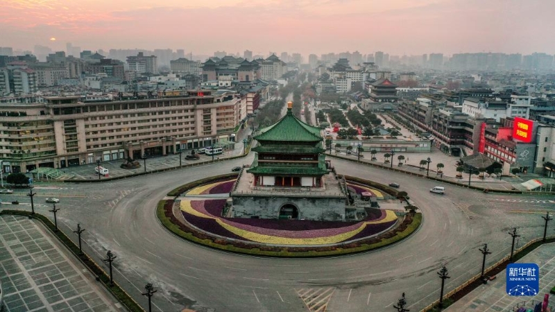 12月27日拍攝的西安市鐘鼓樓廣場(無人機照片)。