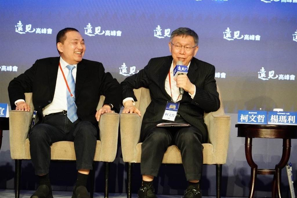 新北市長(zhǎng)侯友宜(左)、臺(tái)北市長(zhǎng)柯文哲(右)出席遠(yuǎn)見高峰會(huì),暢談城市防疫學(xué)。(臺(tái)北市政府提供/張立勛臺(tái)北傳真)
