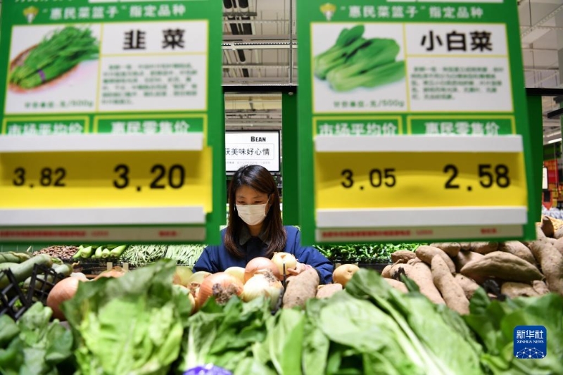 市民在安徽省合肥市經(jīng)開區(qū)芙蓉社區(qū)一家超市選購(gòu)“惠民菜”(11月7日攝)。新華社記者 劉軍喜 攝