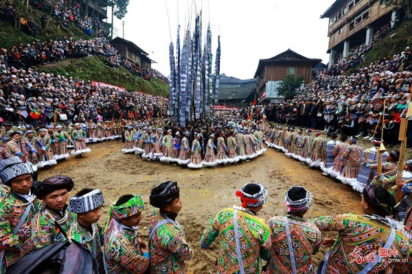 苗族鼓藏節(jié),是貴州省雷山縣傳統(tǒng)祭祀節(jié)日。鼓藏節(jié)又叫祭鼓節(jié),是苗族屬一鼓(即一個支系)的支族祭祀本支族列祖列宗神靈的大典,俗稱“吃鼓藏”。鼓藏節(jié)在先秦夏王朝時期的古三苗國就己存在。在漢文典籍中對苗族“吃牯臟”的文字記錄,始見于清代。苗族鼓藏節(jié)主要流布于雷山縣全縣的9個鄉(xiāng)鎮(zhèn)的苗族村寨和榕江縣的部分苗族村寨。