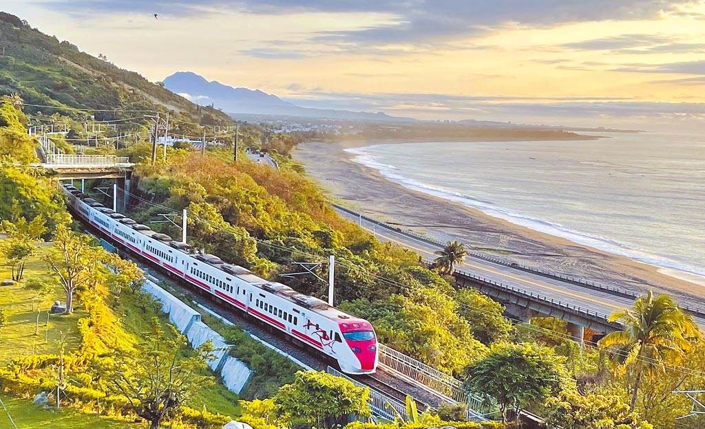 清晨6點(diǎn)多,從臺(tái)東太麻里曙光觀景臺(tái)往北拍,可留下普悠瑪列車,在晨光中駛過(guò)華源灣的美景。(圖/記者莊哲權(quán)攝)