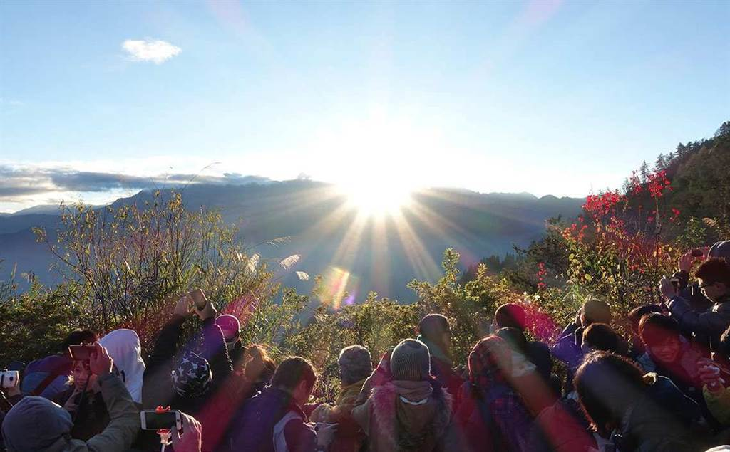 民眾可到阿里山參加“日出印象音樂(lè)會(huì)”,在高山上的天籟演奏下,一同欣賞高海拔、高質(zhì)量、高水平的三高日出印象音樂(lè)會(huì)?;蚴窃诎⒗锷降挠缫奶幰鸱?314觀景臺(tái)迎接元旦第一道日出。
