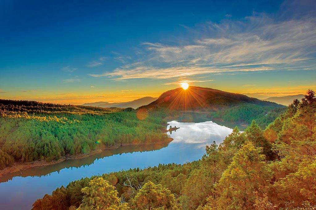 “金龍山曙光”是觀賞日出的秘境,也是臺(tái)灣中部首屈一指的迎曙光勝地,海拔820公尺,擁有云海、琉璃光、晨曦等名山勝景。或是在日月潭湖光水色霧氣繚繞的夜幕,迎接曙光。