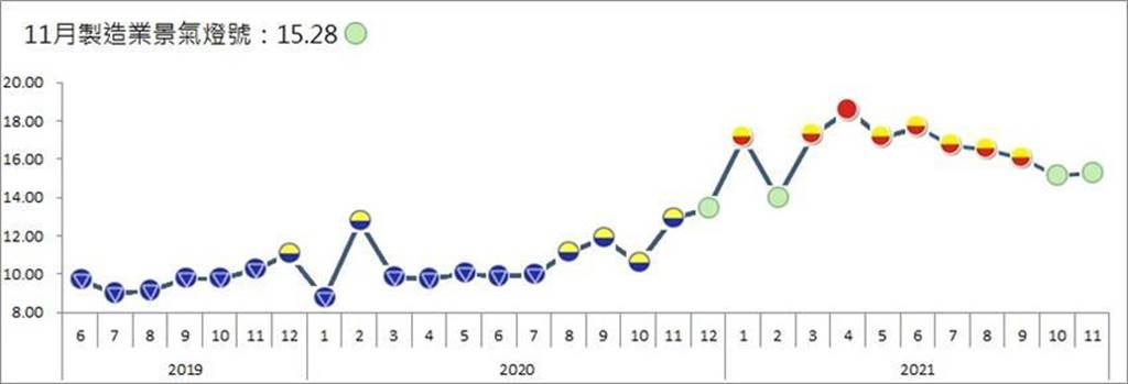 臺(tái)灣地區(qū)經(jīng)濟(jì)研究院30日發(fā)布2021年11月整體制造業(yè)景氣概況?!芭_(tái)經(jīng)院”景氣預(yù)測(cè)中心表示,島內(nèi)制造業(yè)進(jìn)出口、外銷訂單及生產(chǎn)等經(jīng)濟(jì)數(shù)據(jù)續(xù)呈雙位數(shù)成長(zhǎng),仍需對(duì)抗變種病毒擴(kuò)散、高通膨可能加速,以及緊縮貨幣政策等不利因素,景氣信號(hào)值僅從2021年10月的15.14分,略增加0.14分至11月的15.28分。