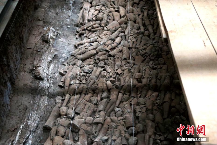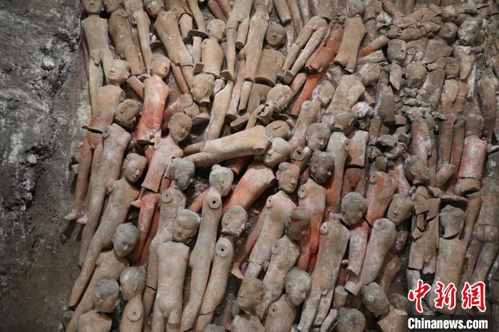 江村大墓外藏坑內(nèi)藏有大量陶俑。(來源:中新網(wǎng))