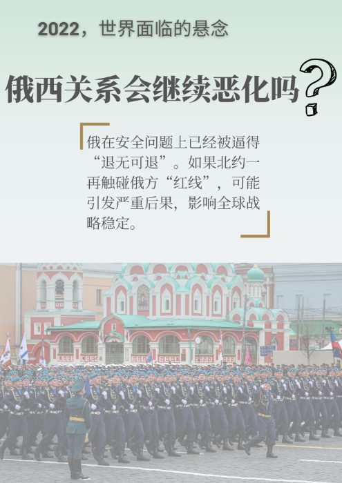 2021年,俄羅斯與西方國家圍繞烏克蘭問題等激烈交鋒,雙方關(guān)系進(jìn)入冰凍期。俄總統(tǒng)普京日前表示,俄在安全問題上已經(jīng)被逼得“退無可退”。