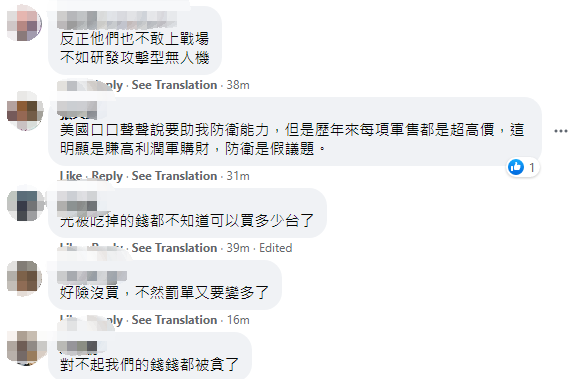 臺軍購買直升機落空在島內(nèi)引發(fā)群嘲。網(wǎng)友留言諷刺“反正他們(臺軍)也不敢上戰(zhàn)場,不如研發(fā)攻擊型無人機”“美國口口聲聲說要助臺防衛(wèi)能力,但歷年來每項軍售都是超高價,這明顯是賺高利潤軍購財,防衛(wèi)是假議題”,也有網(wǎng)友諷刺民進黨當(dāng)局“光被吃掉的錢都不知道可以買多少臺了”“錢都被貪了”云云。