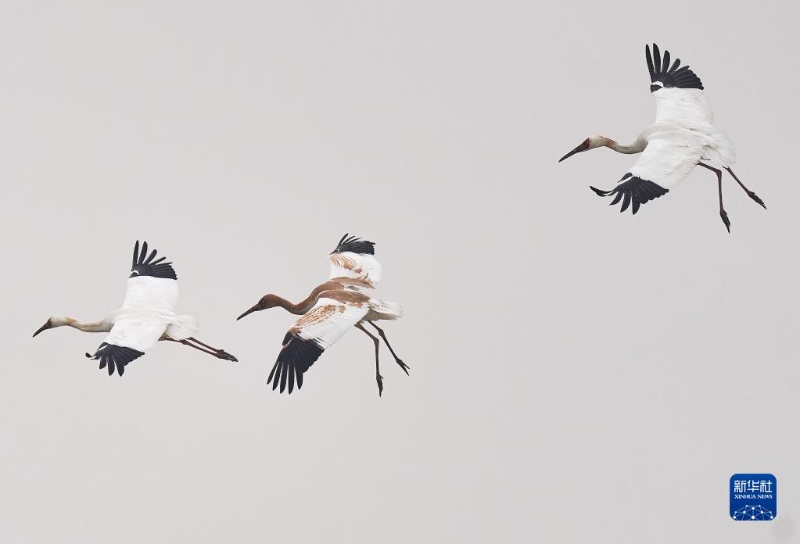 白鶴在濕地飛舞(1月1日攝)。新華社記者 萬象 攝