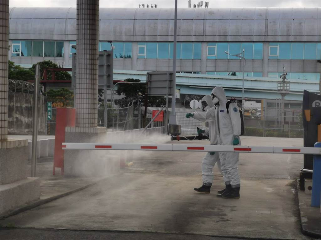 桃機(jī)群聚再擴(kuò)大,今增第5人確診。圖為桃機(jī)消毒畫面。(陳麒全攝)