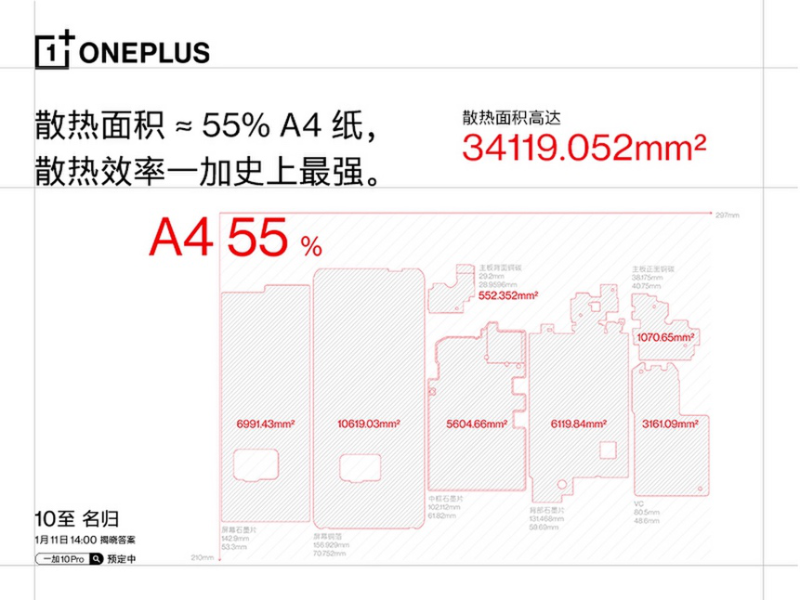 一加10 Pro還在散熱系統(tǒng)打磨上做足功夫。此次打造的空間散熱系統(tǒng),整體散熱面積相當(dāng)于A4紙的55%大小,材質(zhì)上由VC均熱板銅、石墨片、散熱硅膠、金屬框架等五重散熱材料組成。系統(tǒng)還采用了熱源分散堆疊設(shè)計,形成散熱通道,使得散熱更高效。讓用戶在各個場景,尤其是游戲場景能夠長時間穩(wěn)定發(fā)揮,告別手機發(fā)熱痛點。