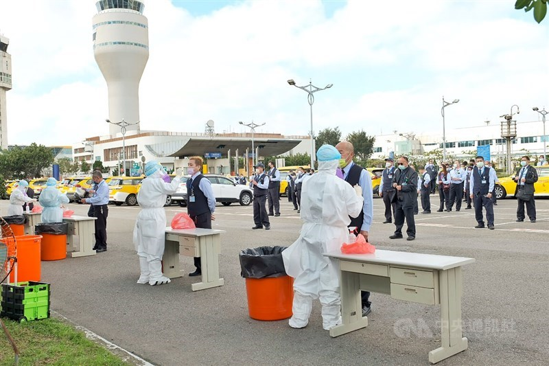 桃機(jī)群聚案截至6日中午已有8人確診,其中檢出“奧密克戎”個(gè)案從2例增為4例。圖為桃機(jī)防疫出租車司機(jī)接受篩檢。
