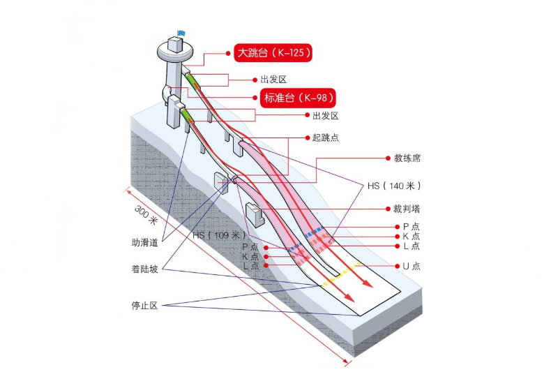 國家跳臺滑雪中心將在北京冬奧會跳臺滑雪、北歐兩項(xiàng)的比賽。國家跳臺滑雪中心是我國首座符合國際標(biāo)準(zhǔn)的跳臺滑雪場地,也是張家口賽區(qū)冬奧會場館建設(shè)群建設(shè)中工程量最大、技術(shù)難度最高的競賽場館。跳臺剖面因與中國傳統(tǒng)吉祥飾物“如意”的S開曲線契合,因此被形象的稱為“雪如意”。
