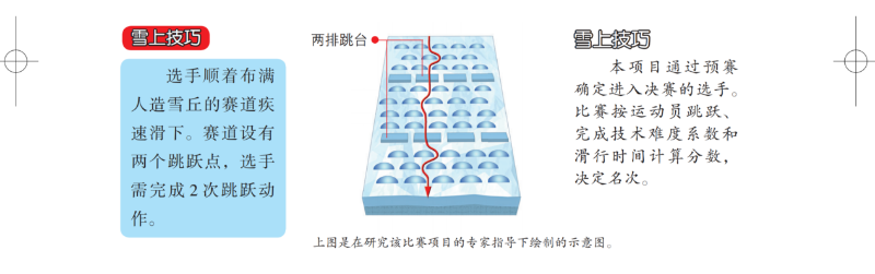 自由式滑雪項(xiàng)目包括空中技巧、雪上技巧、U型場(chǎng)地技巧、坡面障礙技巧、障礙追逐和大跳臺(tái)等小項(xiàng),不同小項(xiàng)各具特色。