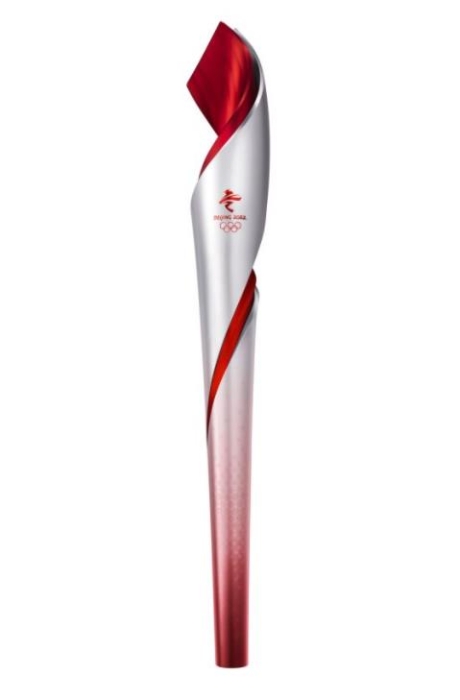 火炬整體外觀與北京2008年奧運會開幕式主火炬塔形態(tài)相呼應,體現(xiàn)了“雙奧之城”的傳承與發(fā)揚。自下而上從寓示吉祥的祥云紋樣逐漸過渡到剪紙風格的雪花圖案,旋轉上升,如絲帶飄舞,最后呈現(xiàn)為飛揚的火焰。祥云傳達吉祥的寓意,是北京奧運會的延續(xù);雪花表現(xiàn)冬奧會的特征,是北京2022年冬奧會的創(chuàng)新。