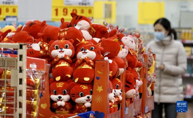 1月5日拍攝的北京市海淀區(qū)一家超市內(nèi)銷(xiāo)售的虎年吉祥物玩具?! ?/p>