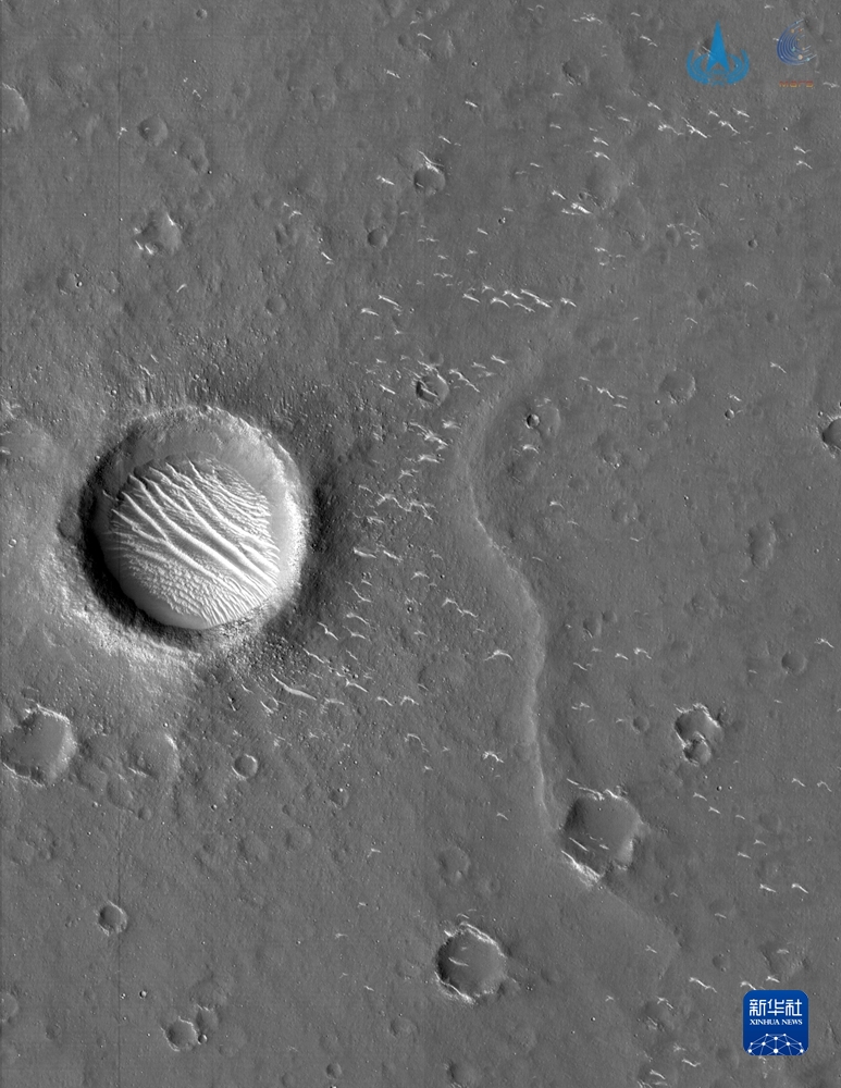 2021年3月4日,國家航天局發(fā)布由我國首次火星探測任務(wù)天問一號探測器拍攝的高清火星影像圖。新華社發(fā)(國家航天局供圖)