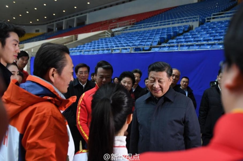 2019年2月1日,中共中央總書記、國家主席、中央軍委主席習近平在北京看望慰問基層干部群眾,考察北京冬奧會、冬殘奧會籌辦工作。這是1日下午,習近平在國家冬季運動訓練中心勉勵正在訓練備戰(zhàn)的運動員、教練員。新華社記者 謝環(huán)馳攝
