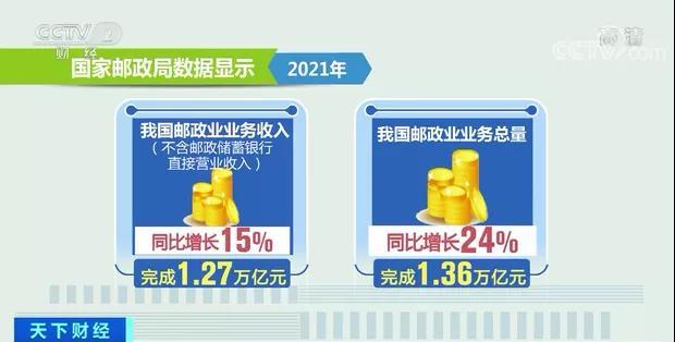 國家郵政局?jǐn)?shù)據(jù)顯示,2021年我國郵政業(yè)業(yè)務(wù)收入(不含郵政儲(chǔ)蓄銀行直接營業(yè)收入)和業(yè)務(wù)總量分別完成1.27萬億元和1.36萬億元,同比分別增長15%和24%;快遞業(yè)務(wù)收入和業(yè)務(wù)量分別完成1.04萬億元和1085億件,同比分別增長18%和30%。新增社會(huì)就業(yè)20萬人以上,支撐網(wǎng)絡(luò)零售額接近11萬億元。