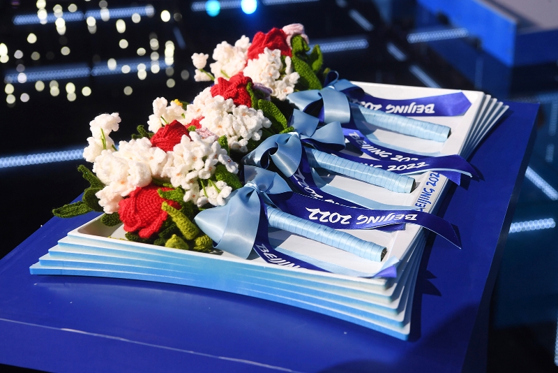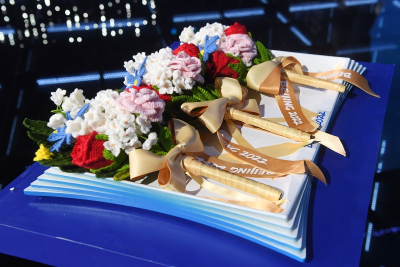 為了踐行節(jié)儉、可持續(xù)的辦奧理念,北京2022年冬奧會(huì)和冬殘奧會(huì)采用手工絨線編結(jié)花束作為頒獎(jiǎng)花束,在獎(jiǎng)牌頒發(fā)儀式中與獎(jiǎng)牌一同頒發(fā)給獲獎(jiǎng)運(yùn)動(dòng)員。