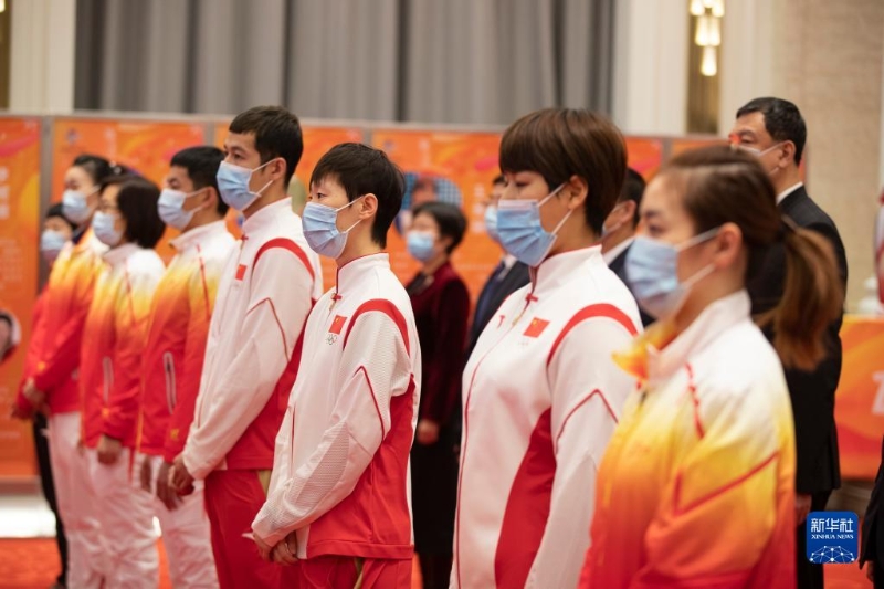 1月5日,世乒賽冠軍王曼昱(中)參加北京2022年冬奧會火炬展示活動。