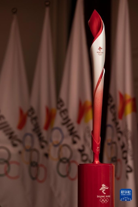 圖為活動現(xiàn)場進(jìn)行展示的北京冬奧會火炬(1月5日攝)。