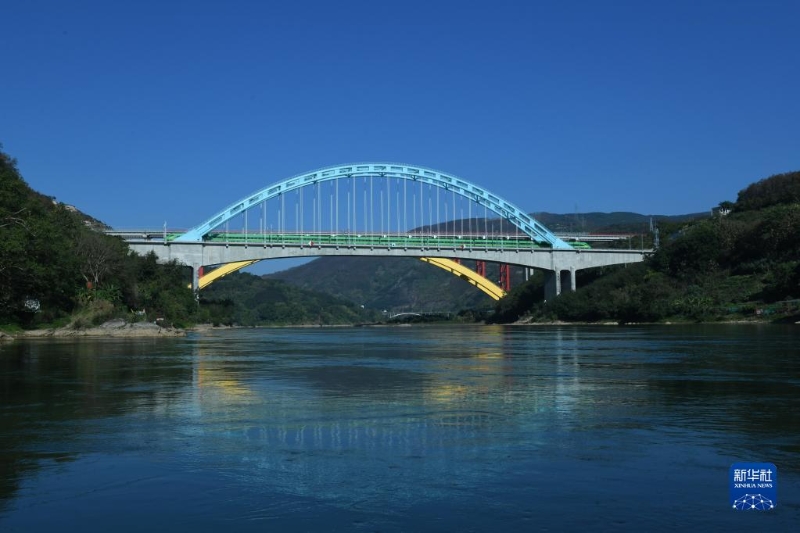1月9日,列車行駛在位于云南西雙版納傣族自治州的中老鐵路景洪瀾滄江大橋上?! ?/p>