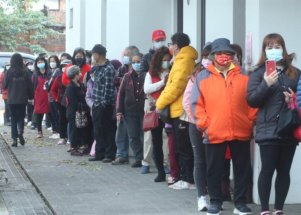 桃園機場爆發(fā)群聚感染并延燒到社區(qū),截至昨天(9日)已有23例確診。 圖為民眾排隊采檢。(陳怡誠攝)