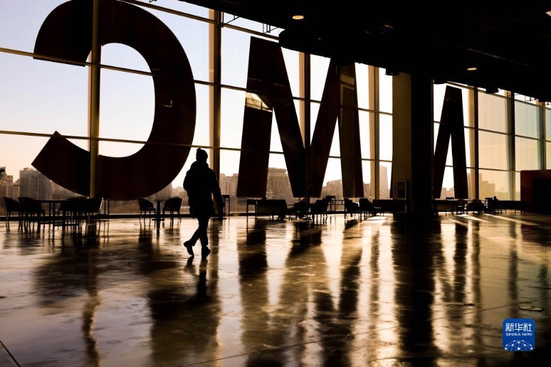 1月10日,一名工作人員從主媒體中心二層的媒體休息區(qū)走過?! ?/p>