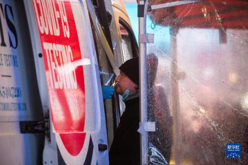 1月9日,一名受檢者在美國紐約時報廣場一處新冠檢測點接受檢測。