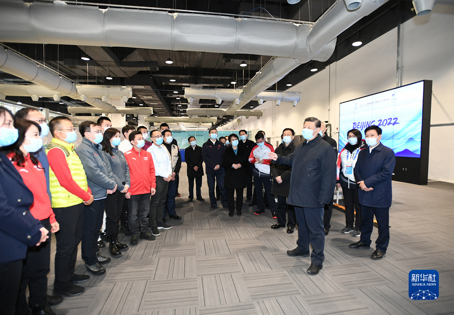 1月4日,中共中央總書(shū)記、國(guó)家主席、中央軍委主席習(xí)近平在北京考察2022年冬奧會(huì)、冬殘奧會(huì)籌辦備賽工作。這是4日下午,習(xí)近平在二七廠冰雪項(xiàng)目訓(xùn)練基地速滑館,向參訓(xùn)運(yùn)動(dòng)員、教練員表示慰問(wèn)。新華社記者 謝環(huán)馳 攝