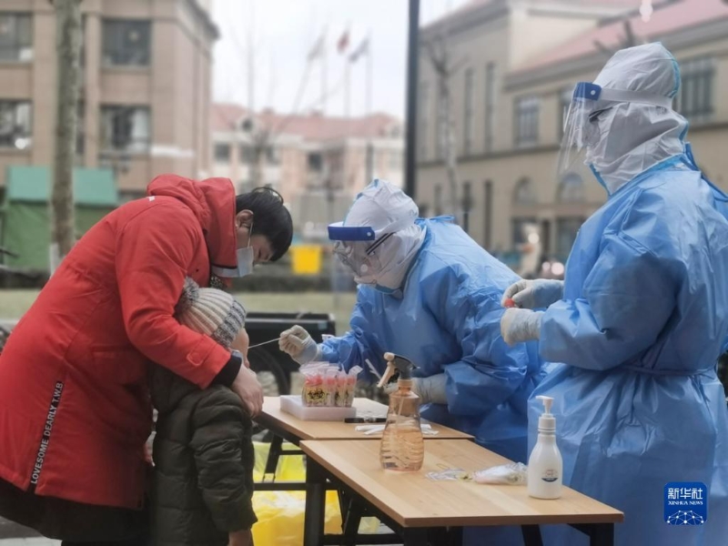 醫(yī)務(wù)人員為天津市津南區(qū)居民進(jìn)行核酸檢測(cè)取樣(1月9日攝)。新華社記者 劉惟真 攝