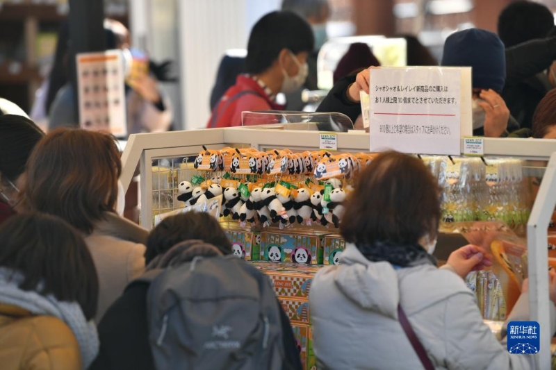 1月12日,游客在日本東京上野動物園參觀大熊貓后選購大熊貓紀念品。
