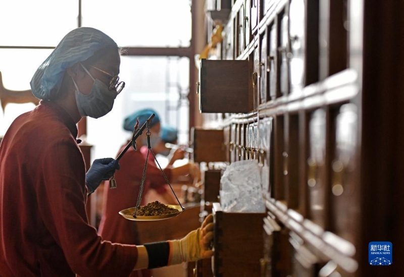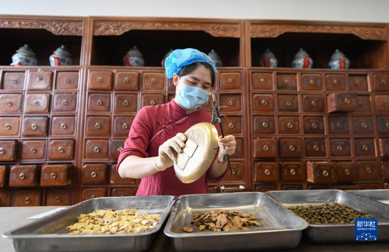 1月12日,藥師在天津中醫(yī)藥大學第一附屬醫(yī)院進行中藥調(diào)劑。