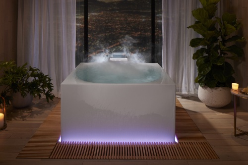 在本次展會(huì)上備受矚目的科勒朗月獨(dú)立浴缸,也確認(rèn)將于2022年正式上市。這款浴缸的設(shè)計(jì)靈感來(lái)源于日本森林浴,通過(guò)水流、燈光、水氣和香氛交織出了沉浸式感官體驗(yàn),達(dá)到放松心靈、舒緩身體和煥活精神的目的。采用無(wú)邊溢流的循環(huán)水流設(shè)計(jì),當(dāng)熱水緩緩注入浴缸,一段自我療愈的旅程便也起航,隨著水流逐漸溢出,宛若山林間的潺潺溪流,環(huán)繞四周的全光譜照明營(yíng)造各式氛圍,氤氳水氣裊裊升起,仿佛一層薄紗輕柔籠罩,讓沐浴者享受深層放松。最后還可以畫龍點(diǎn)睛地添加一些精油,香氛隨著水氣柔和散發(fā),打造居家SPA體驗(yàn),讓人可以在此靜心冥想,沉浸于充滿幸福感的私享空間。