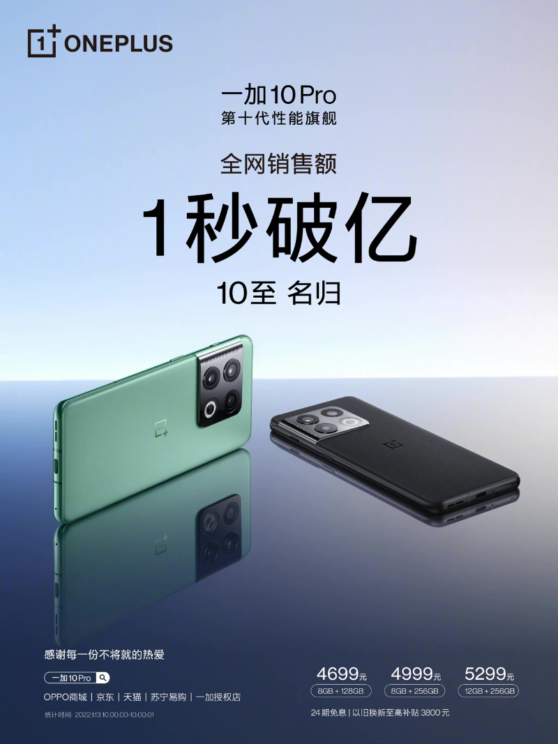 一加 10 Pro正在火爆熱銷中,其中8GB+128GB售價(jià)4699元、8GB+256GB售價(jià)4999元、12GB+256GB售價(jià)5299元,可在OPPO商城、京東、天貓、一加授權(quán)店、京東之家等線上線下全渠道進(jìn)行購(gòu)買。