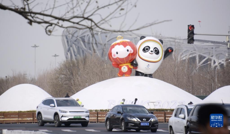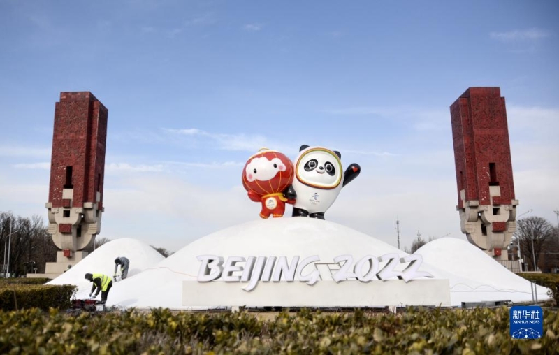 北京2022年冬奧會(huì)和冬殘奧會(huì)吉祥物“冰墩墩”“雪容融”日前在位于北京中軸線的奧林匹克景觀大道南端亮相。