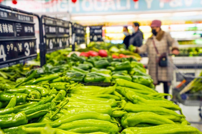 1月12日,顧客在河北省遵化市一家超市內(nèi)選購蔬菜。新華社發(fā) 劉滿倉 攝