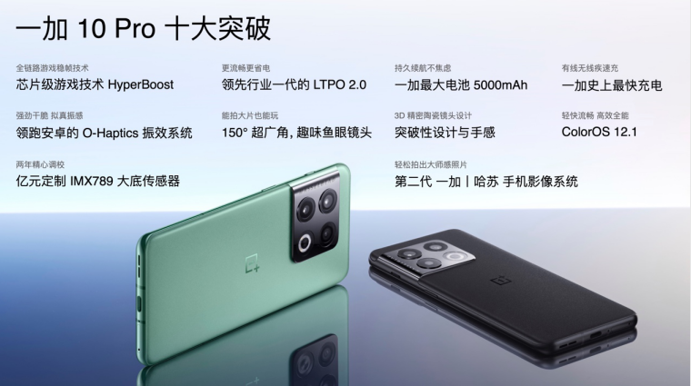 一加 10 Pro在外觀設(shè)計上大膽突破,后置攝像頭模組區(qū)域破界式地延伸至鋁合金中框,帶來過目不忘的辨識度。配色工藝上一加 10 Pro破界黑采用了第三代絲綢玻璃工藝,萬物青則用了全新的星芒玻璃工藝,每一款配色都不沾指紋且手感出眾。