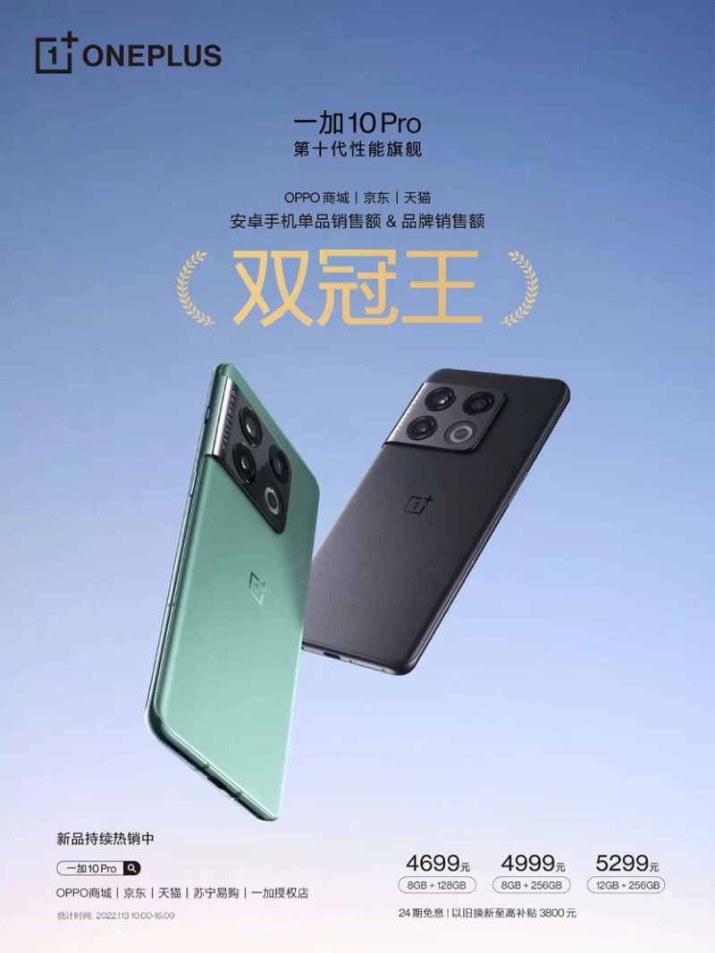 憑借著頂級性能及在游戲、影像、屏幕等方面的強(qiáng)悍表現(xiàn),一加 10 Pro在1月13日首銷當(dāng)日一經(jīng)開售,取得了全網(wǎng)銷售額1秒破億的優(yōu)異成績,同時包攬了OPPO商城、京東、天貓平臺的安卓手機(jī)單品銷售額及品牌銷售額雙冠軍。