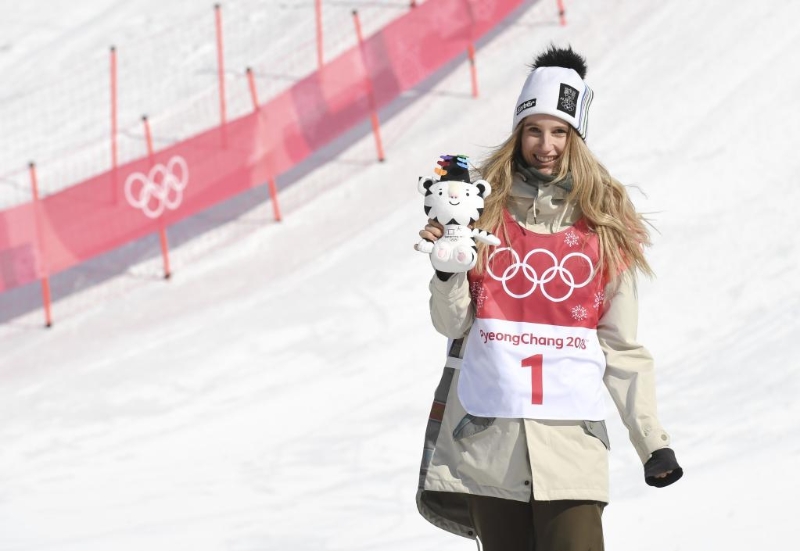2018年2月22日,平昌冬奧會(huì)單板滑雪女子大跳臺(tái)比賽中,奧地利選手安娜· 加塞爾獲得冠軍。新華社記者呂小煒攝