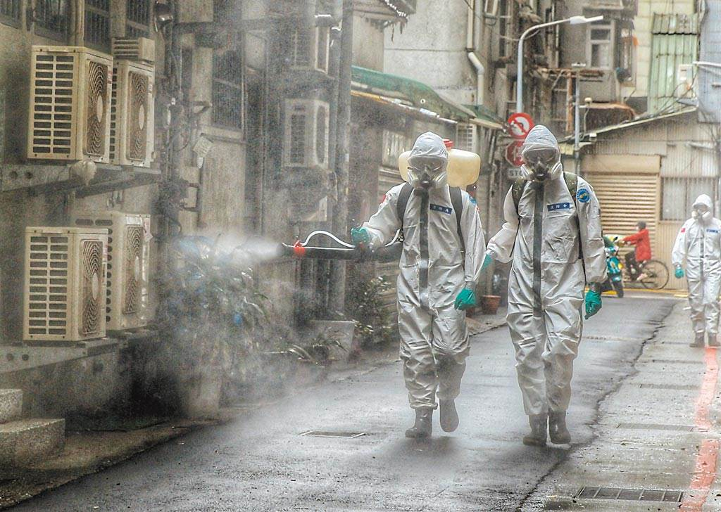 示意圖。新冠肺炎疫情蔓延,因應(yīng)春節(jié)返臺與南來北往人潮驟增,臺北市環(huán)保局與化學(xué)兵群合作,持續(xù)加強防疫旅館等10大場域周邊環(huán)境消毒,讓市民安心。(資料照/王英豪攝)