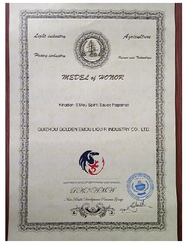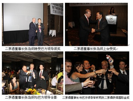 巴拿馬時(shí)間2013年4月19日下午6點(diǎn),在巴拿馬國際博覽會(huì)中南美洲國際洽談會(huì)上,由巴拿馬總統(tǒng)、工信部長、亞太集團(tuán)總裁隆重宣布榮獲本屆醬香白酒國際金獎(jiǎng)單位:中國貴州金盾二茅酒,并親自為張島綱董事長頒發(fā)巴拿馬自1915年后新世紀(jì)第二枚醬香白酒獎(jiǎng)?wù)?,二茅酒酒業(yè)與世界客商及巴拿馬人民共同鑒證金盾二茅酒重現(xiàn)中國醬香白酒榮耀的輝煌時(shí)刻。