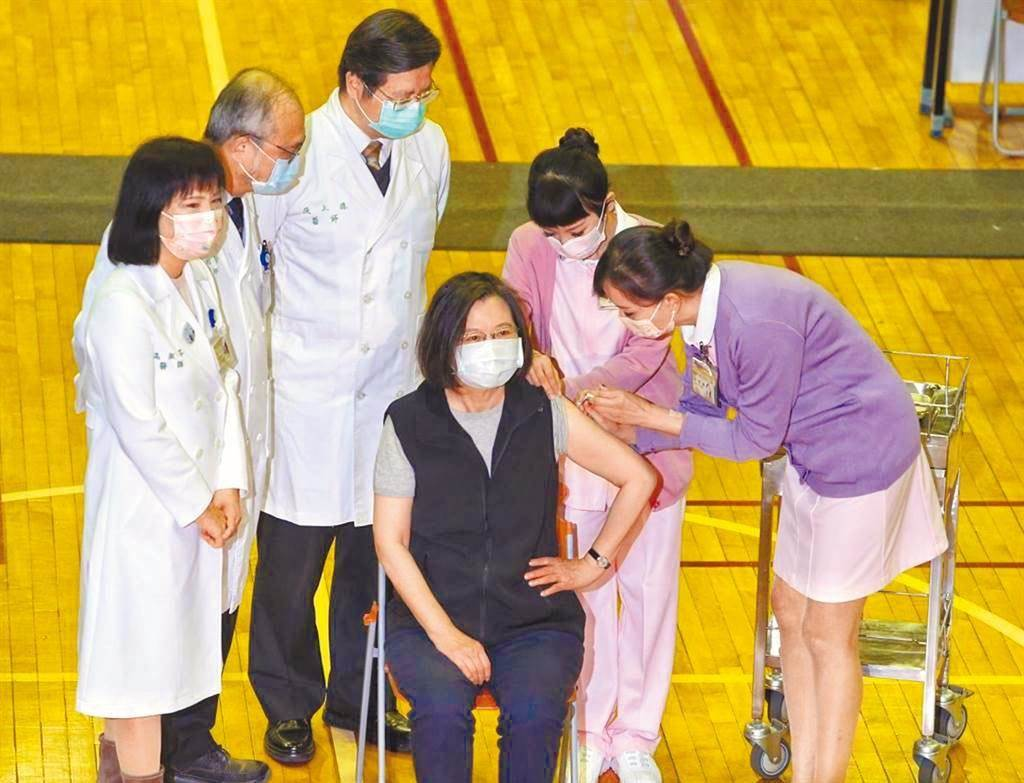 島內(nèi)開放施打疫苗加強劑,蔡英文接種第三劑高端。(趙雙杰攝)