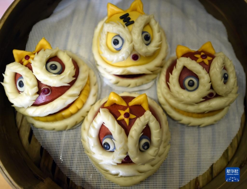 黃山市徽州區(qū)西溪南鎮(zhèn)居民制作完成的虎頭花饃(1月19日攝)。新華社記者 周牧 攝