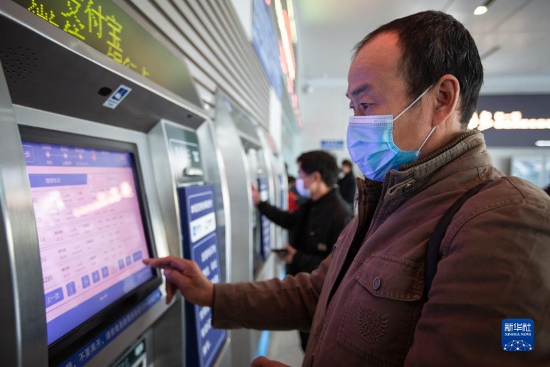 1月3日,旅客在南京火車站通過自助售票機(jī)購買火車票。當(dāng)日,鐵路部門開始發(fā)售2022年春運(yùn)火車票。新華社發(fā)(蘇陽 攝)