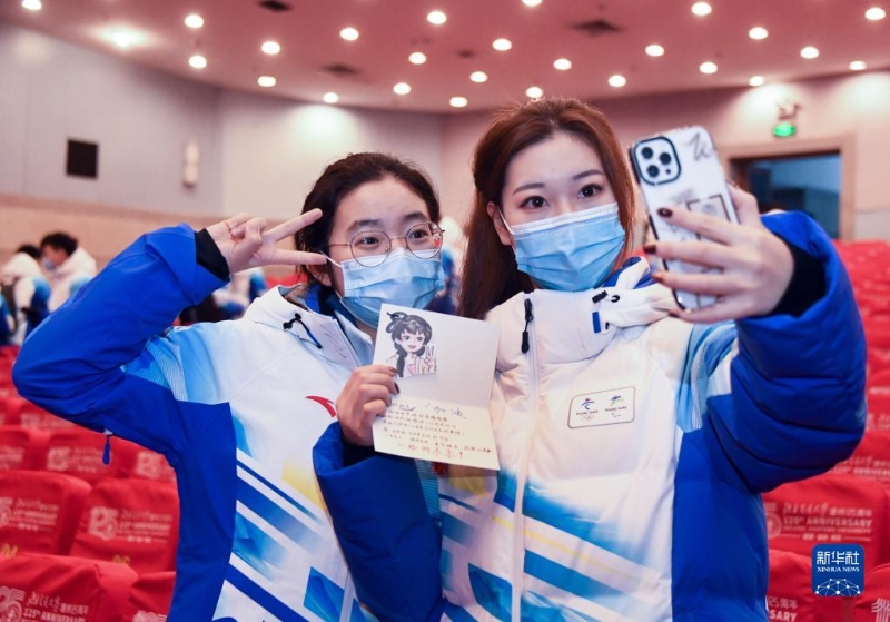 1月23日,參加北京交通大學(xué)2022年冬奧會(huì)和冬殘奧會(huì)志愿者出征儀式的志愿者拍照留念。
