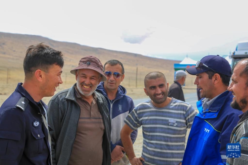 2019年6月11日,位于新疆塔什庫(kù)爾干塔吉克自治縣的卡拉蘇出入境邊防檢查站的民警向塔吉克斯坦司機(jī)介紹出入境相關(guān)事宜。新華社發(fā)(黃歡 攝)